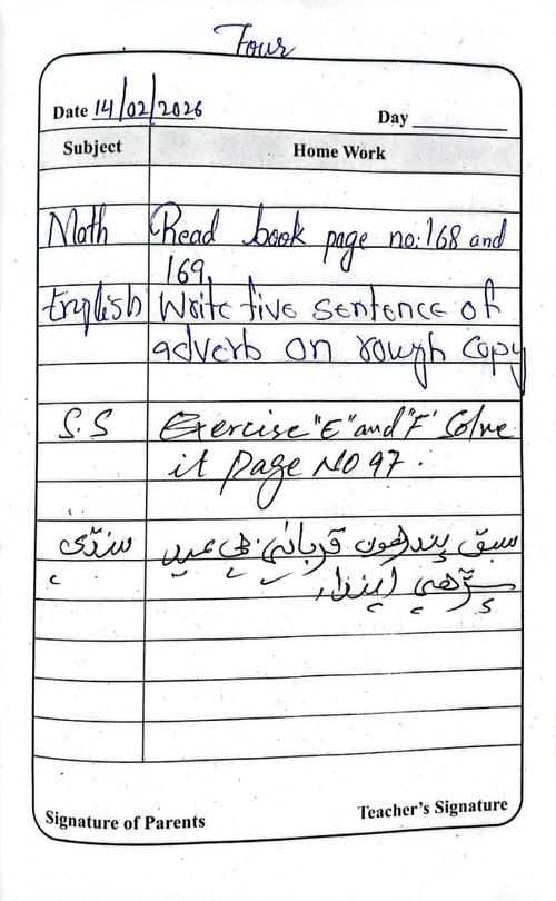 Daily Diary Class 4, 14 February 26