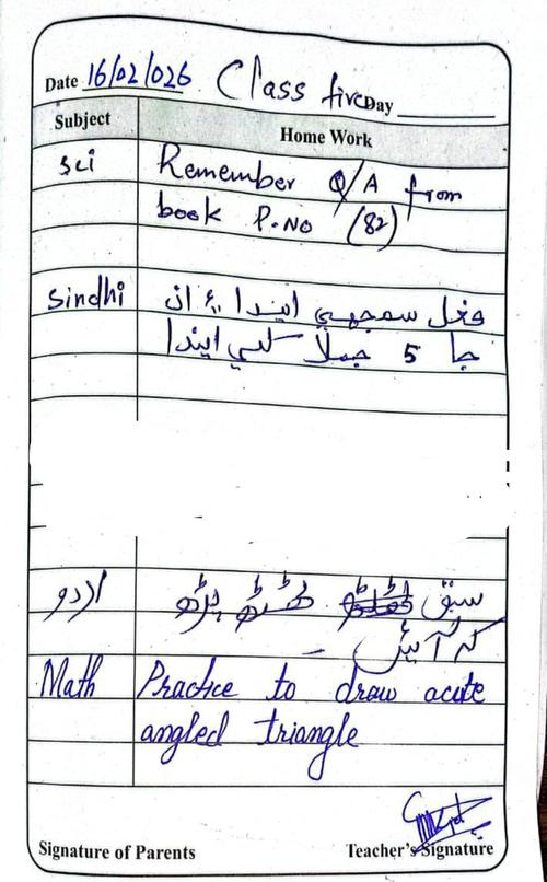 Daily Diary Class 5, 16 February 26