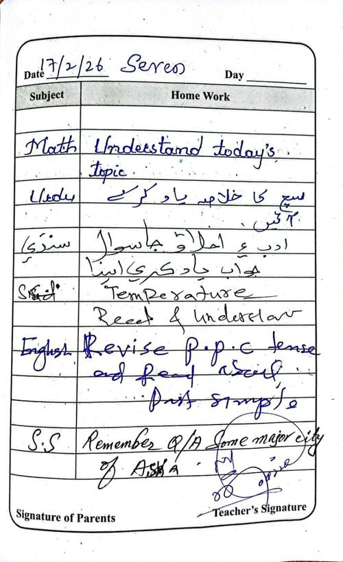 Daily Diary Class 7, 17 February 26