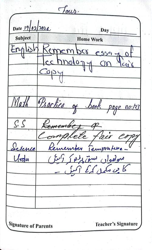 Daily Diary Class 4, 19 February 26