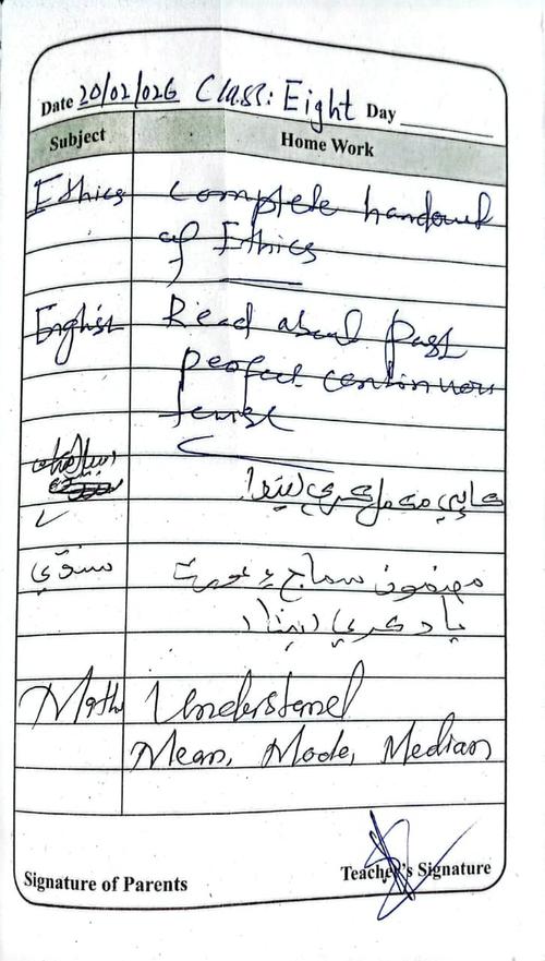 Daily Diary Class 8, 20 February 26