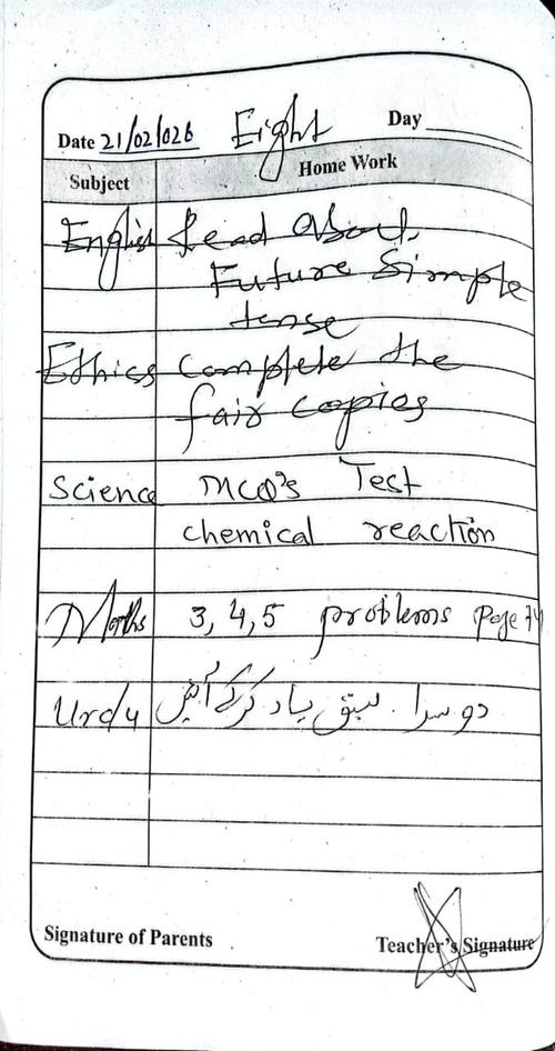 Daily Diary Class 8, 21 February 26