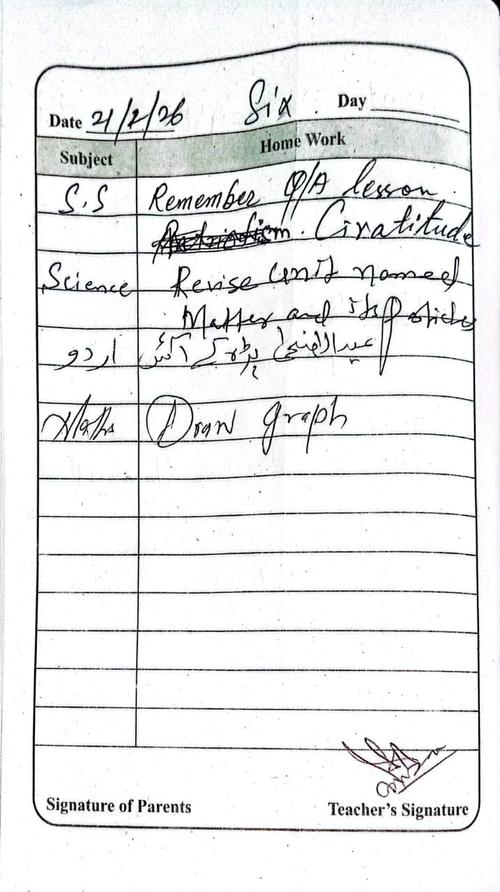 Daily Diary Class 6, 21 February 26