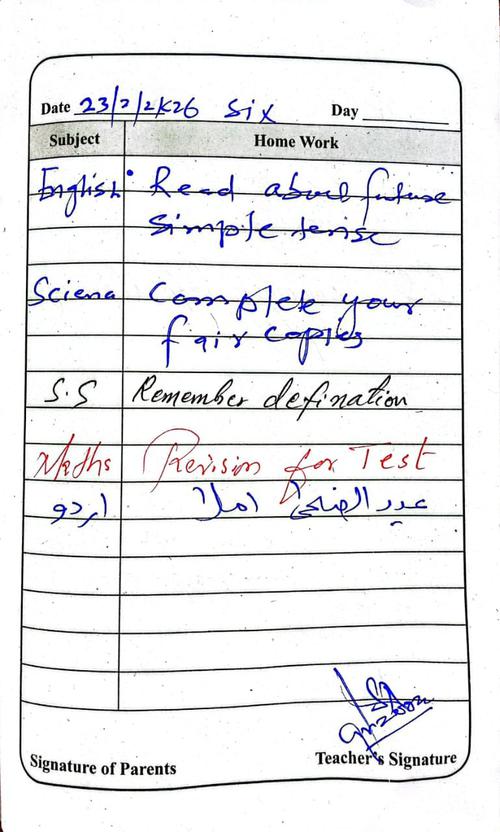 Daily Diary Class 6, 23 February 26