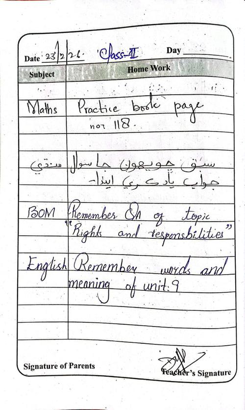 Daily Diary Class 2, 23 February 26