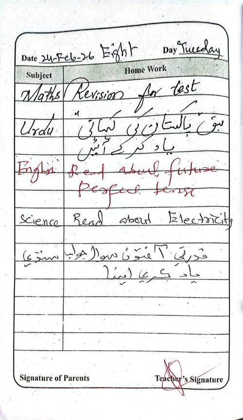 Daily Diary Class 8, 24 Feb 26